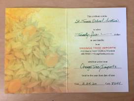 Everyone loves Orange Tree Imports. This chocolate lovers' basket is exactly the reason why. Also, you get a $25 gift certificate to go on a shopping spree! Have fun.
