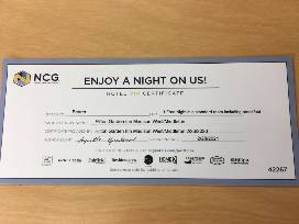 Certificate good for one night in a standard room and breakfast. Valid at NCG Hilton Garden Inn Madison West/Middleton