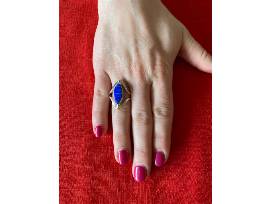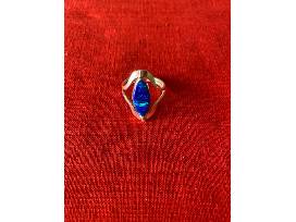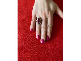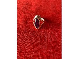 The first side has a lovely purple stone and the second side has a blue stone with green moments. This ring is medium in size. It will fit most adult women's ring finger.