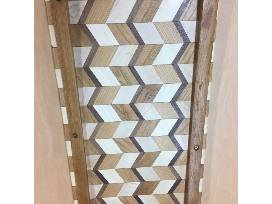 This is a beautiful hand-made wooden board with chevron design made by our very own parishioner, "Stoney," Tom Stoneman. His fine work is truly shown in this lovely serving board. The board measures 20.5" x 11",