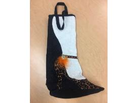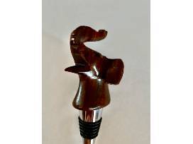 A dream gift for a shoe buff who loves wine. This hand-made gift bag is a leopard-print, high-heeled shoe design paired with a great bottle of Naughty Girl red wine from von Stiehl Winery in Door County and a unique wooden hand-carved elephant wine stopper. The elephant measures 3 inches in height. Don't this miss this special gift.
