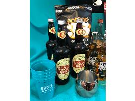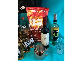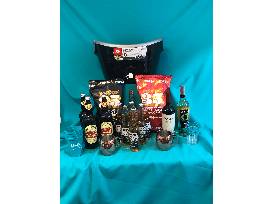 Includes: Igloo beverage cooler, 3 bottles ginger beer, 2 bottles wine, Tito's Vodka, 2 copper mugs, 2 bags popcorn, 7 Coronas