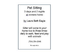 Sitter will come to your home to walk, feed, and play with the animals.