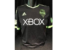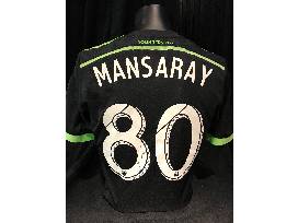 Victor Mansaray, #80, autographed this black short sleeved jersey.
