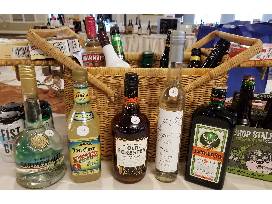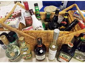 Picnic basket loaded with an assortment of goodies for a party! Make pudding shots, jell-o shots, Margaritas, or drink it straight. Contents: kunin grappa of Grenache, Jose Cuervo Margarita, Creme De Menthe, Goldschlager, Old Forester 100 proof Bourbon, Jagermeister, Malibu Rum, Carolans Irish Cream, Smirnoff Rasberry Vodka, Kahlua, Rasberry Liqueur, strawberry, peach & berry blue Jell-O, Dream Whip, Jell-O pudding (banana cream, vanilla, chocolate and white chocolate), plastic mini cup containers with recipes for pudding shots, and a mixed selection of 8 craft beers