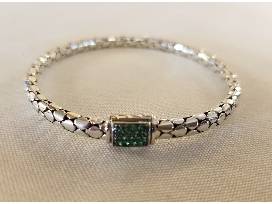 Women's Dot Silver & Tsavorite Chain Bracelet by John Hardy. Pavé gemstone stations accent John Hardy's signature sterling silver bracelet in a modern dot motif. $695 retail. www.johnhardy.com