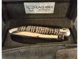 Be the owner of this authenti, exclusive Laguiole En Aubrac 12cm "Molaire De Mammouth" Ivory Handle folding knife. The molars of a mammoth are beautiful and impressive materials. The marvelous hue of the ivory stems from the deposit of various minerals into the tooth. Knife comes with a black leather sheath.