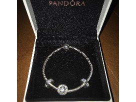 Pandora Snake Chain Bracelet with Barrell Clasp and 3 Charms