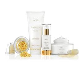 Jafra Cosmetics Basket that includes items from their Royal Jelly Line: Body Complex, Solar Protection Fluid SPF 50, Gentle Cleansing Milk, Scar Balm, Global Longevity Crème, Global Longevity Balm, Pore Minimizer Serum, Global Longevity Eye Crème, Extra Hydration Serum, Beauty Dynamics Face & Body Cleansing System, Diamonds Blush Parfum, Paris ET Moi P. Courtuere Parfum, Jafra Spa Day Care for Hands with SPF15, Jafra Spa Night Care for Hands with Shea Butter and Hand Scrub with Jojoba Beads, and Royal Almond Hydrating Body Lotion.