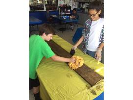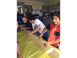 Handmade large wooden ruler to measure the growth of your young ones, made by BGC kids at the Marion & John E. Anderson Youth Center.