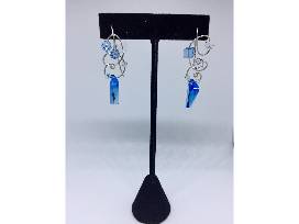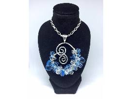 Make a statement with this Blue and White tone Swarovski embossed swirled metal pendant necklace, along with a set of matching Blue and White tone Swarovski metal swirled earrings.