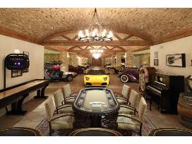 Bob & Audrey are opening their home to you and 9 friends for an evening of cocktails, hors d'oeuvres and dinner at their Villa del Lago home. You'll get a chance to see the home theater that seats 13 with a glass floor, a 7,500 square foot subterranean room with 5 LED TVs that accommodates Bob's 'man cave' and his extensive collection of classic cars, 1,000 sq ft. gym and massage room and their open room to view a crescent-shaped swimming pool whose gray-blue surface echoes the lake beyond, their very own 'Lake Como'.