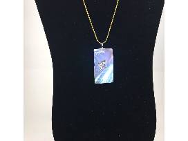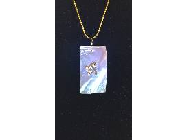 Donated is a necklace 14K gold with gold wire wrapped Imperial Topaz on a Blacklip Shell pendant. Value: 95.00