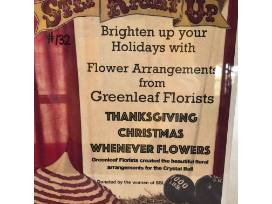 Greenleaf Florist owner and SSL member Debbie Helsel will put together three flower arrangements for the winner of this auction. Greenleaf Florist's examples are all over the Crystal Ball because they created all of our flowers for this event again! You know you will receive beautiful arrangements just by looking around the room! The winner will receive Thanksgiving, Christmas, and whenever flowers. Pick-up is in Frankfort.