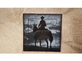 This is a beautiful 12" x 12" granite plaque with a laser design of a cowboy on horseback. Great as a gift for any cowboy or to use as a memorial plague.