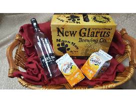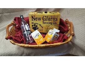Items that remind you of Wisconsin! 12 pack of Moon Man Pale Ale from New Glarus Brewing Company - only available in Wisconsin, a bottle of Wisconsin Death's Door White Whisky, one (1) 12 oz package mixed cheddar cheese curds, one (1) 8 oz package of Shullsburg Creamery Cheese n' Bacon. Package also includes a nice red lap blanket to snuggle up in.