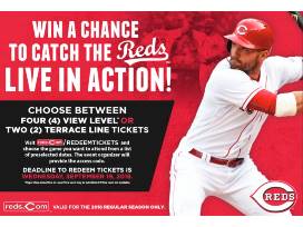 This package includes your choice of 4 "View Level" tickets or 2 "Terrace Line" Tickets to a preselected list of Cincinnati Reds games. Valid during 2018 Season only. Also included are 4 admission tickets to the Reds Hall of Fame and Museum (valid through September 30, 2018).