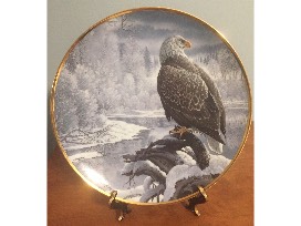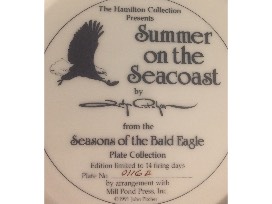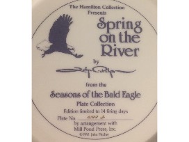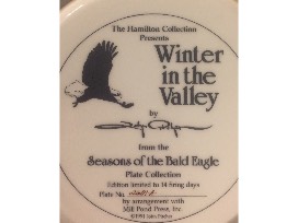 This is the "Seasons of the Bald Eagle" plate collection series by artist John Pitcher, which includes the following; (1) "Spring on the River", #0099A, (2) "Summer on the Seacoast", #0116B, and (3) "Winter in the Valley", #2601A. It's a beautiful series showing the majestic bald eagle across this great country. These plates were issued in 1991.