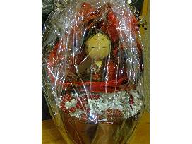 1This "Red Beauty" gift basket contains one Japanese Wood Figurine with fabric wrap, a beautiful oriental pillow case that will add pizzazz to any room in your house, a Red, Silver and White bead necklace and exquisite red and silver stone bracelet.