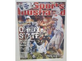 January 3, 2003, 8:00 PM BCS National Championship Game....OSU #2 vs Miami #1, Sun Devil Stadium OSU shocks Miami by claiming the National Title! This Sports Illustrated Cover from January 13, 2003 is signed by a few of the players, including: QB #15 Scott McMullen, Punter #21 BJ Sander, and more!