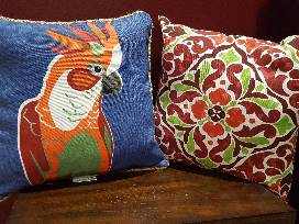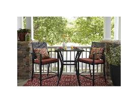 Turn your patio, deck, or yard into a beautiful oasis with this beautiful patio set. This set includes two metal frame wicker chairs and table with Red Solartex Cushions. Two additional pillows have been added for extra comfort and style.