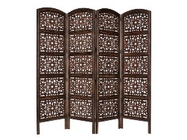 Rajasthan antique brown 4 panel handcrafted wood room divider screen 72x80. Intricately carved on both sides, making it fully reversible, highly versatile.