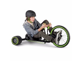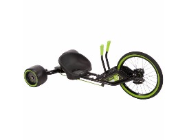When it's time for outrageous fun, you want the Huffy Green Machine RT. The super-charged Power+ twin-tube frame is motocross-styled and ready to produce heart-pounding 180-degree spins and smooth slides. Dual-stick steering is easy to maneuver with comfortable green grips. The Huffy Green Machine RT features a coaster brake and freewheel combination for maximum control of spins and slides. Super-slick rear wheels with green trim support the fun while the front pneumatic tire with green sidewalls adds extra power. The durable steel frame features a fully adjustable bucket seat. It's easy to make sure the legendary ride is a comfortable fit for a range of riders. With great style and ready for unforgettable fun - the Huffy Green Machine RT.