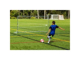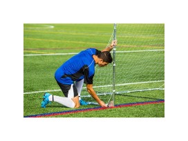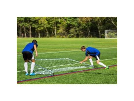 The Franklin 10' x 5' Premier Folding Soccer Goal is perfect for teams with limited storage space. It features a unique folding design for easy set-up and storage, and the precision-fit locking pins ensure a secure assembly. It includes 6 galvanized ground stakes and an all-weather net.