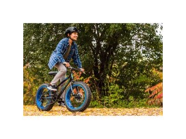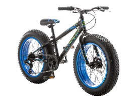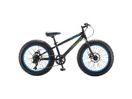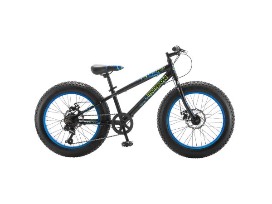 The 20" Boys Mongoose Pug 20" fat tire bike rides smoothly on a wide variety of terrain thanks to gnarly oversized tires that offer extra stability & traction. Cruiser frame geometry makes for a comfortable but athletic riding position. The Pug is equipped with a supersized beach frame with plenty of clearance, and those knobby 4.25" wide tires can handle any terrain - even sand or snow for the really adventurous. The oversized wheelset offers crucial lightweight durability, complemented by dual disc brakes for all-condition stopping and low rise handlebars for added comfort and stability. Top it all off with a strong, long-lasting 3-piece crank and reliable 7-speed twist shifters, and this fat bike is ready to conquer anything. The real question is... are you? Remember, there's nothing you can't do on a Mongoose.