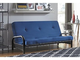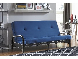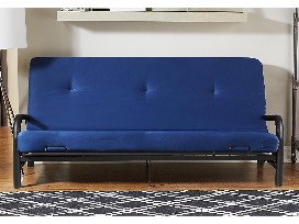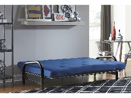 Simple in style but big in comfort, this Black Metal Arm Futon combines functionality with a modern design featuring a curved metal frame ideal for small spaces. Converts easily from sitting to sleeping position to accommodate guests on the fly. Available in multiple mattress colors, the Black Metal Arm Futon is the perfect fit for a dorm, apartment or a condo. Blue mattress