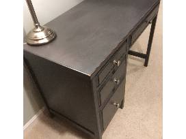 Made from mahogany wood and stained grey. It includes a hanging file drawer. Perfect for anyone.