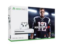 Purchase the Xbox One S Madden NFL 18 Bundle featuring a digital full game download of Madden NFL 18, an Xbox wireless controller, 14-days Xbox Live Gold trial, 1-month Xbox Game Pass, discount code for 20% off NFLshop.com, 4K Ultra HD Blu-ray, 4K video streaming, High Dynamic Range, and premium audio. New Play Styles, the all new Longshot story mode, and new ways to team up and play online in MUT Squads, plus stunning visuals powered by the Frostbite engine make this Madden like you've never seen before.