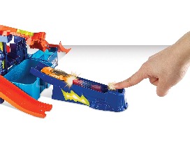 A mad scientist has trapped a Hot Wheels Color Shifters car beneath a color change waterfall and is experimenting with all kinds of crazy color combos. Kids will love the excitement of the Color Splash Science Lab where the color change experiments have gone out of control and only they-and their Color Shifters cars-can save the day.