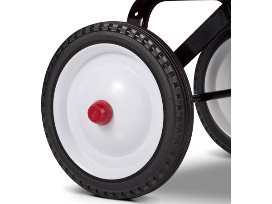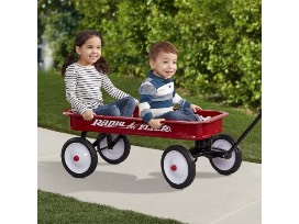 This classic full-sized Radio Flyer wagon has become a symbol of American childhood. The all-steel seamless body with no-scratch edges and 10-inch steel wheels with real rubber tires ensure this wagon is built to last for generations of family fun! The wagon also features an extra-long handle that folds under for storage and a controlled turning radius to prevent tipping.