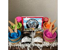 Cuisinart ice-cream maker with extra freezing bowl and cookbook. Serve up your homemade ice-cream with 8 ice-cream bowls and cone shaped spoons to match, sprinkles and a scooper. This package is certainly sprinkled with love