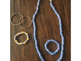 Collectibles from Ghana: purse, matching necklace & bracelet, bracelet, 2 bracelets made from Ghana's old coinage.