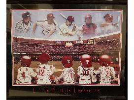 Batter Up! This Little Phillies Legends picture by Harrison Woods is the perfect addition to any Man Cave. Enjoy your $10.00 gift certificate to East Coast Pizza in Chesterfield, $10.00 gift certificate to any Pretzel Boy's locations and your very own Pretzel Boy's XL short-sleeve t-shirt.