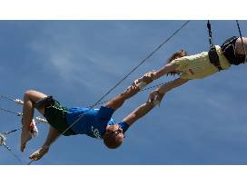 You and three friends will flip and fly with Ms. Wiseman and Mrs. Boyer at Trapeze STL.