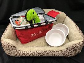 Get your house puppy-ready with a new bed, food and water bowls, toys, a gift card to Kennelwood Resorts and a basket full of Purina treats, food and people-gear.