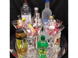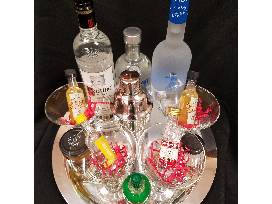 Your favorite martini can be ready in moments with this lovely vodka tray, which includes new martini glasses and vodka. Just add friends!