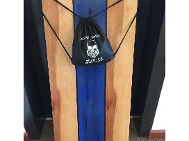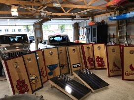 Eric Wilmes of The Bearded Craftsman (TBC) has built a handsome hand-made Cornhole set with matching pieces sporting a bright blue stripe down the center for the ICD Auction this year!