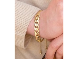 The KOHRS BRACELET adjust to fit. Twin strands of fine chain connect with a section of bold, polished links to fashion this, go-with-it-all bracelet. Tug on the ends to adjust the fit.