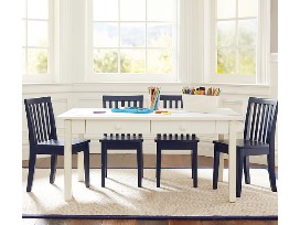 Give your aspiring artists plenty of room to create their masterpieces with the Pottery Barn Carolina Craft Table and Chairs set. Pottery Barn Products are known for their quality and longevity, and this delightful play set is no different. This set comes with the table and four chairs, although the table will accommodate 6 chairs. The set has been rigorously tested to meet or exceed the highest industry safety standards. The table comes in the Charcoal finish, which has been expertly crafted from solid Poplar wood and MDF (medium density fibreboard), an engineered wood that lends strength and ensures that the craft table will endure over time. The four chairs are painted antique white. Artisans carefully layer the Antique White finish for an heirloom patina. All of the finishes are sealed with a final coat of lacquer for extra durability and the durable, smooth surface is easy to clean.