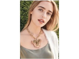 The "Rory" Pendant matches beautifully with the "Eloise" Clutch! Genuine blush leather petals mix with sparkle and tortoise tones in this elegant, statement pendant. The design combination creates the perfect Vintage look for any outfit. Hook closure allows you to style this necklace at varying lengths to bloom into your perfect look. Wear it long or double it up. Measures 36"