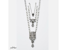 This exquisite Art-Deco design necklace comes in three pieces and is convertible. Each piece can be separated and worn alone, or it can be worn all together as a statement piece as shown.