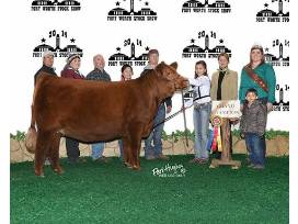 Emma's pedigree is hard to beat. She is sired by FBFS Bonafide and out of PTR Sky Dancer T12. Her dam alone deserves some attention as she raised the solid red Wide Body female that won Fort Worth for the Blount family in 2014, the high seller in the 2015 Elite Sale for $21,000 bought by The Davis Family, and most recently the high selling heifer at the 2016 Black Label Sale that commanded a hammer price of $31,000 and went on to be 6th overall at the 2017 Junior Nationals and 8th overall at the South Central Regional Show for The Wood Family.