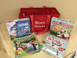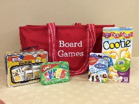 Thirty-One tote with Board Games embroidered on the side. Various kids board games