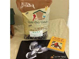 Ecotough bird feeder, Birds of Kentucky guide, Squirrel seed cake, cylinder feeder holder, 5 lb bag of Wild Bird Seed