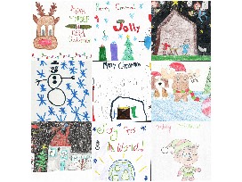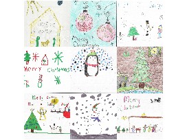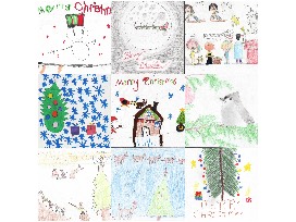 15Choice of 3 different sets of Christmas with pictures drawn by students at MQH. Every set contains 9 cards (1 from grades K -8). All proceeds from the sale of these cards goes towards new laptop for the teachers classrooms at Mary, Queen of Heaven. Pictures shown have been cropped to fit all 9 into on display. Cards contain full picture format.