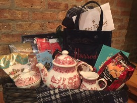 For the Tea Lover -- Enjoy afternoon tea for 2 with a $100 gift certificate from the historic Drake hotel. Continue the experience at home with a vintage Churchill of England china tea set. Assorted teas, biscuits, Royal Palace decorative paper napkins, a recipe book, a Harrods tote and a wool plaid hat & scarf set from Brooks Brothers will have you living like a Brit in no time. Enjoy your cuppas!
